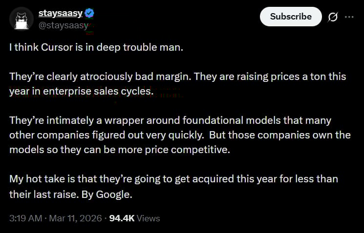 People seem to think Cursor is in deep trouble…